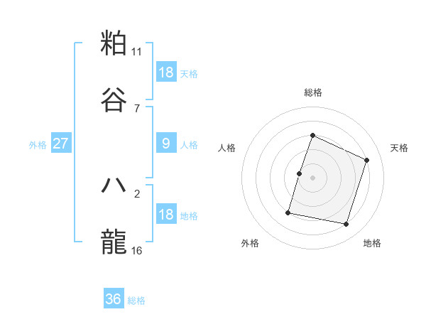 粕谷 ハ龍さんの天格は18画の4点!