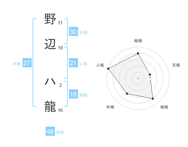 野辺 ハ龍さんの外格は27画の3点!