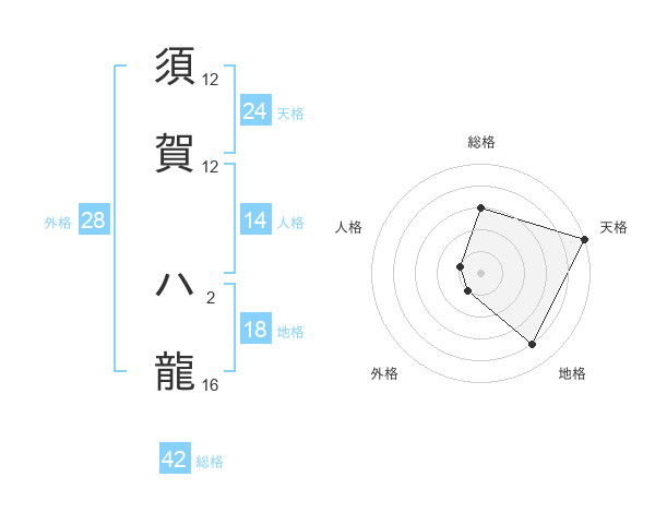 須賀 ハ龍さんを姓名の画数から五運を鑑定