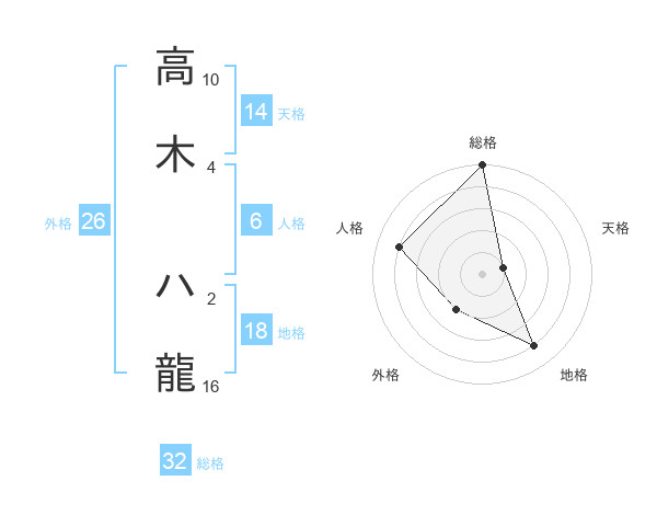 高木 ハ龍さんの総格は32画の5点!