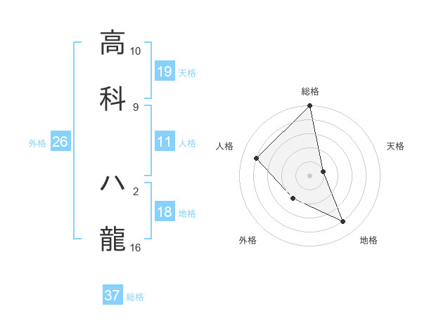 高科 ハ龍さんを姓名の画数から五運を鑑定