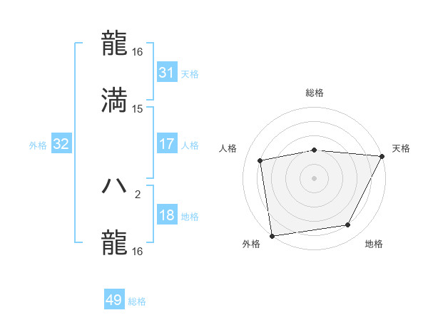 龍満 ハ龍さんの総格は49画の2点!
