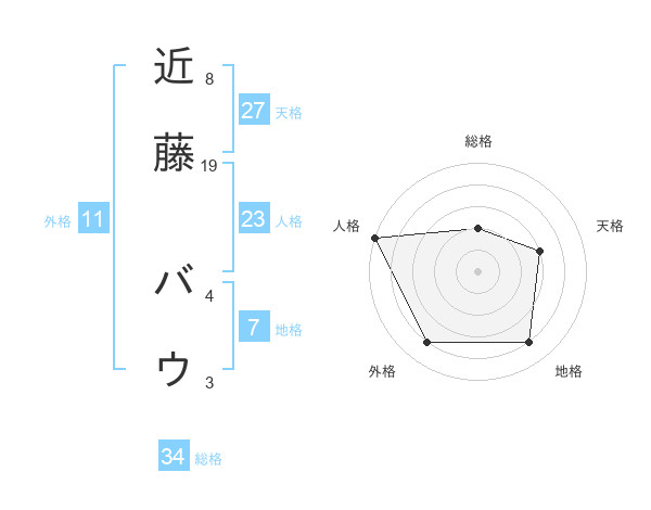 近藤 バウさんの天格は27画の3点!