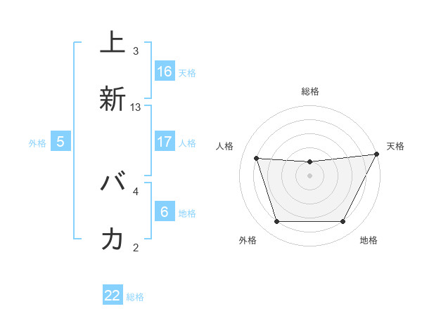 上新 バカさんの総格は22画の1点!
