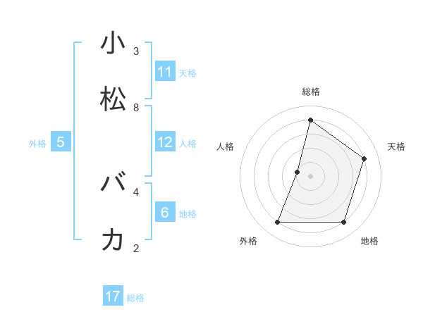 小松 バカさんの天格は11画の4点!