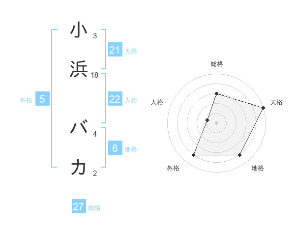 小浜 バカさんの天格は21画の5点!