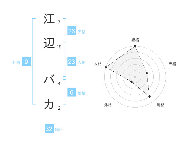 江辺 バカさんの総格は32画の5点!