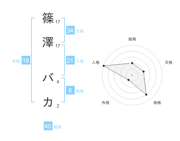 篠澤 バカさんを姓名の画数から五運を鑑定