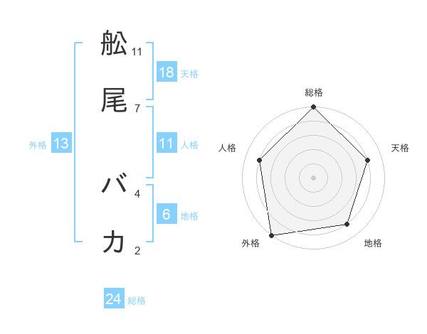 舩尾 バカさんを姓名の画数から五運を鑑定