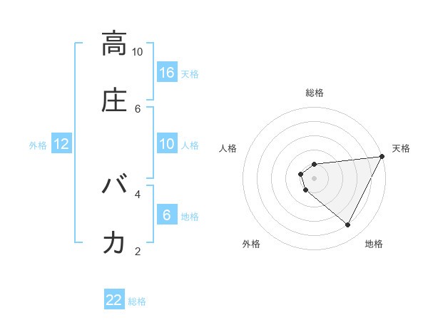 高庄 バカさんの天格は16画の5点!