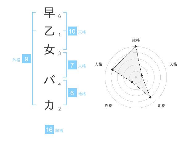 早乙女 バカさんを姓名の画数から五運を鑑定
