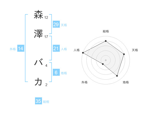 森澤 バカさんの総格は35画の4点!
