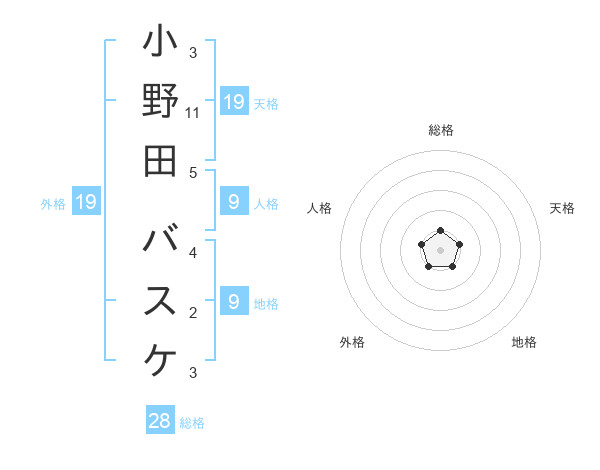 小野田 バスケさんの総格は28画の1点!
