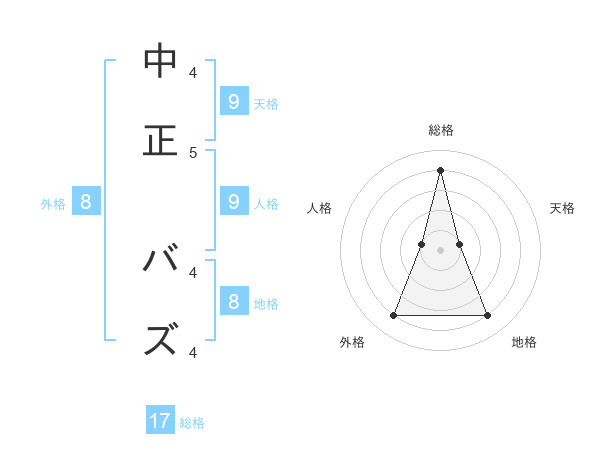 中正 バズさんの総格は17画の4点!
