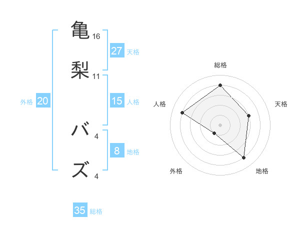 亀梨 バズさんの総格は35画の4点!