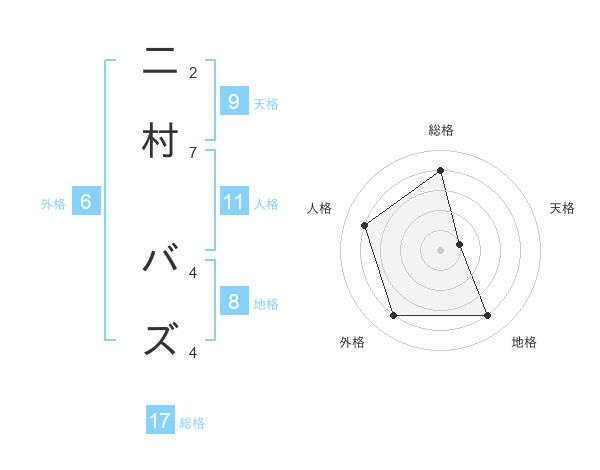二村 バズさんの総格は17画の4点!
