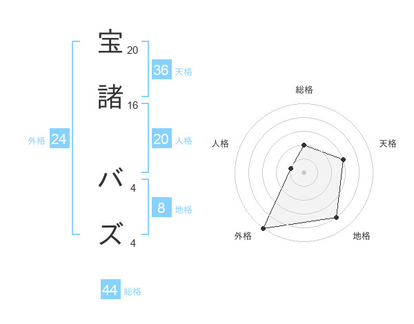 宝諸 バズさんの総格は44画の2点!
