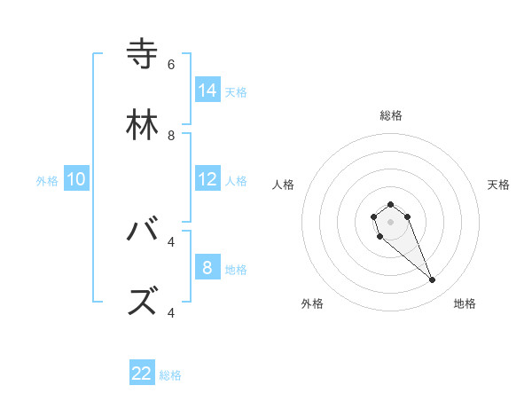 寺林 バズさんの総格は22画の1点!