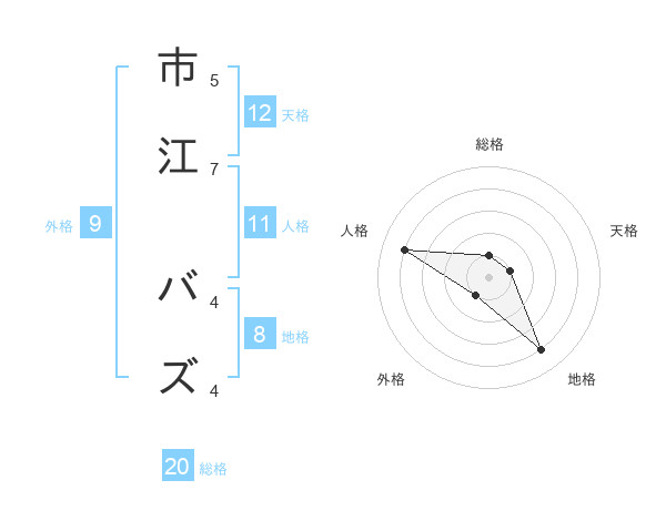 市江 バズさんの総格は20画の1点!