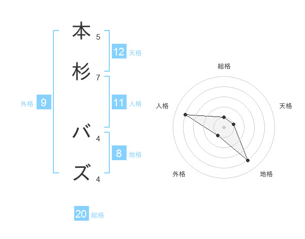 本杉 バズさんの総格は20画の1点!