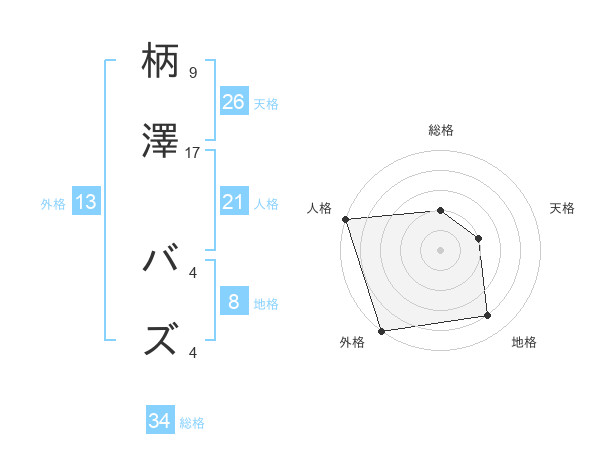 柄澤 バズさんの総格は34画の2点!