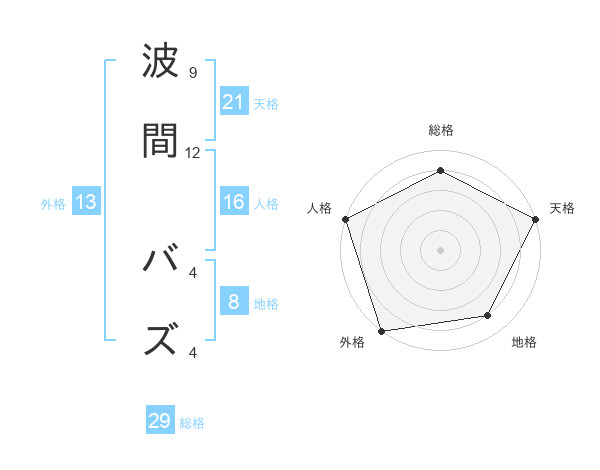 波間 バズさんの総格は29画の4点!