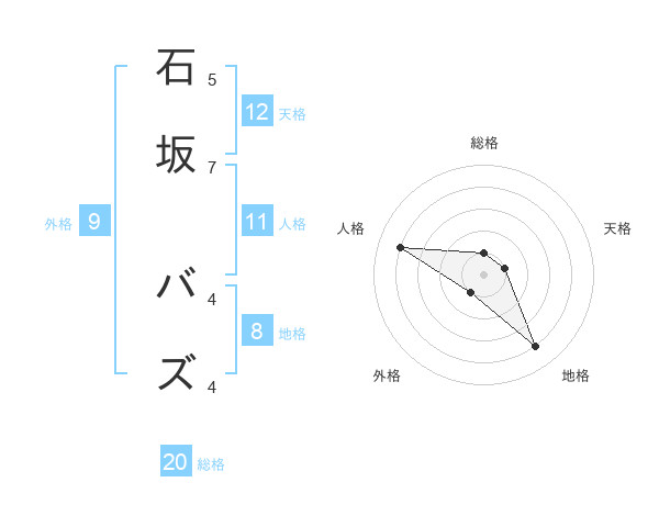 石坂 バズさんの総格は20画の1点!
