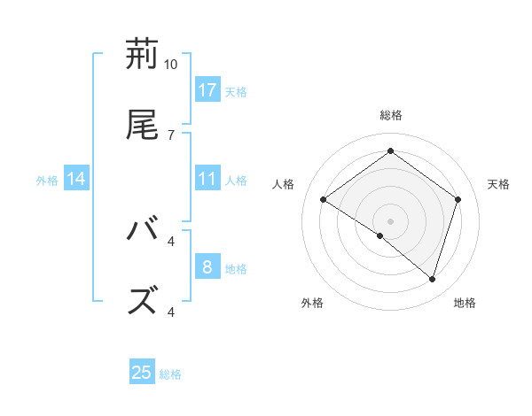 荊尾 バズさんを姓名の画数から五運を鑑定