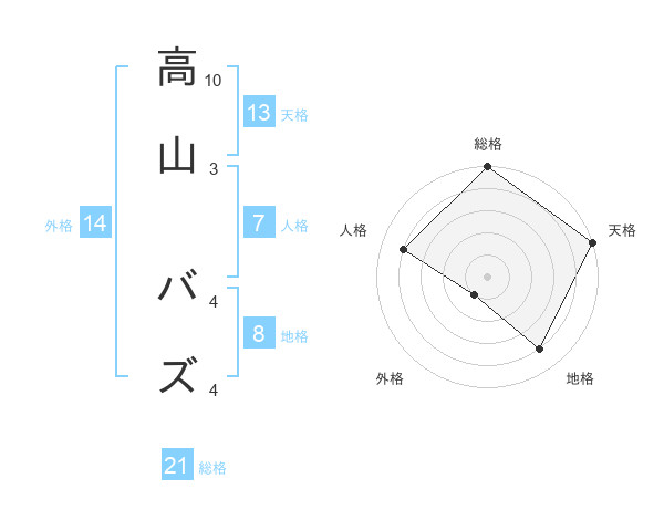 高山 バズさんの総格は21画の5点!
