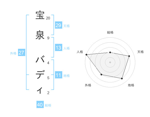 宝泉 バディさんを姓名の画数から五運を鑑定