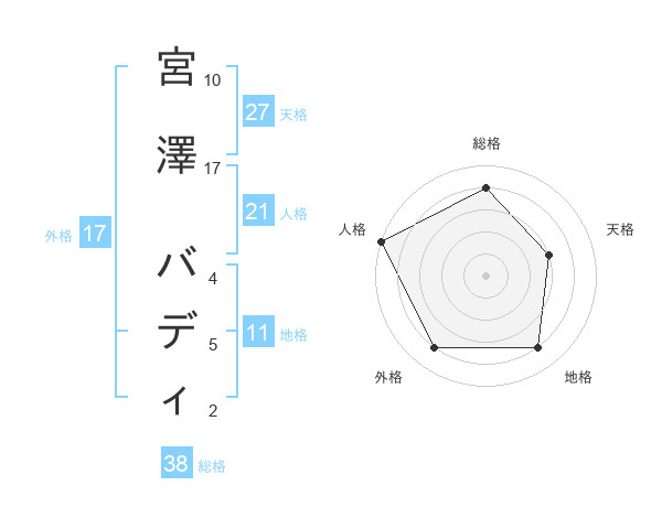 宮澤 バディさんを姓名の画数から五運を鑑定