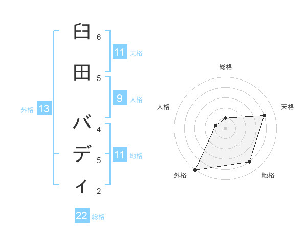 臼田 バディさんの総格は22画の1点!
