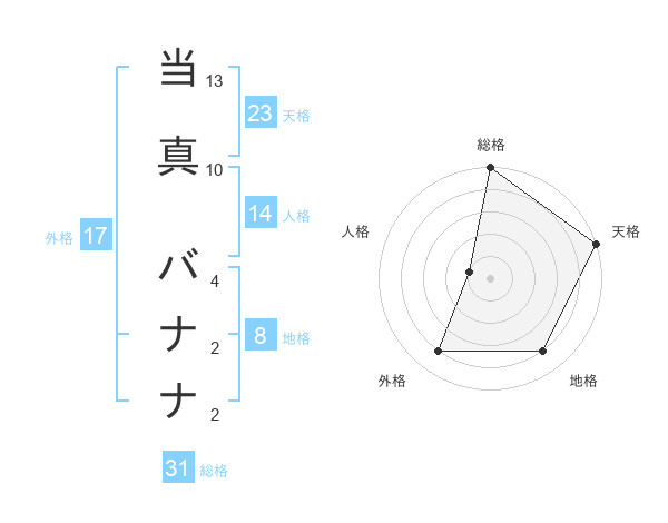 当真 バナナさんの総格は31画の5点!