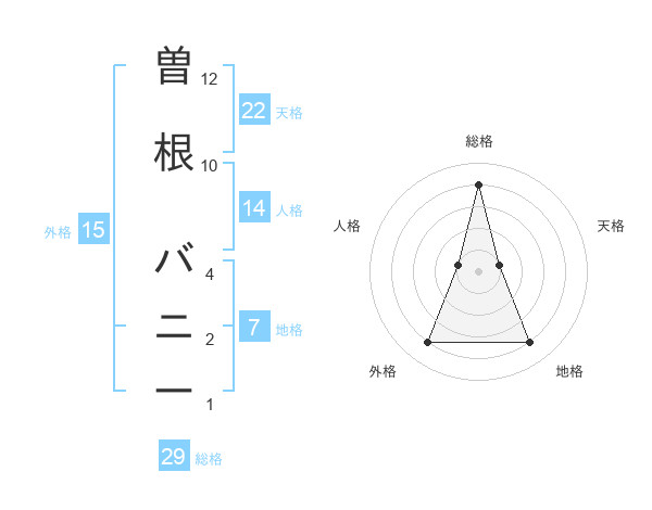 曽根 バニーさんを姓名の画数から五運を鑑定