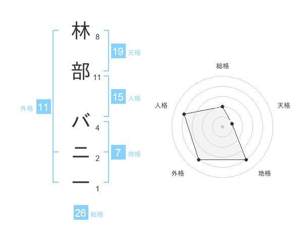 林部 バニーさんの総格は26画の2点!