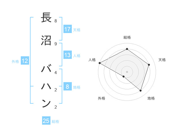 長沼 バハンさんを姓名の画数から五運を鑑定