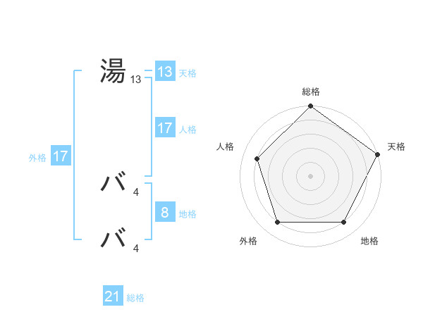 湯 ババさんの総格は21画の5点!