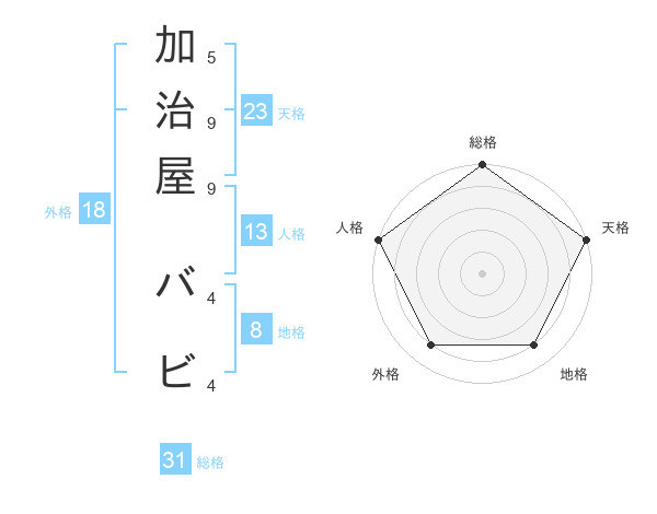 加治屋 バビさんを姓名の画数から五運を鑑定