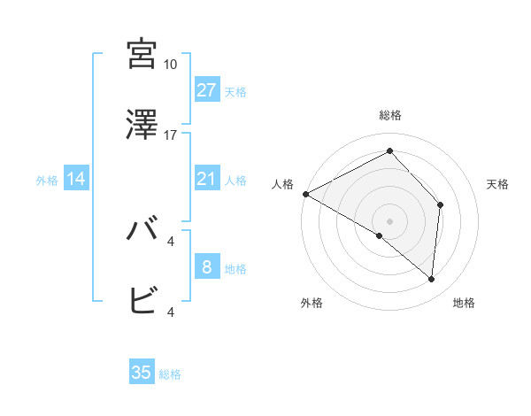 宮澤 バビさんを姓名の画数から五運を鑑定