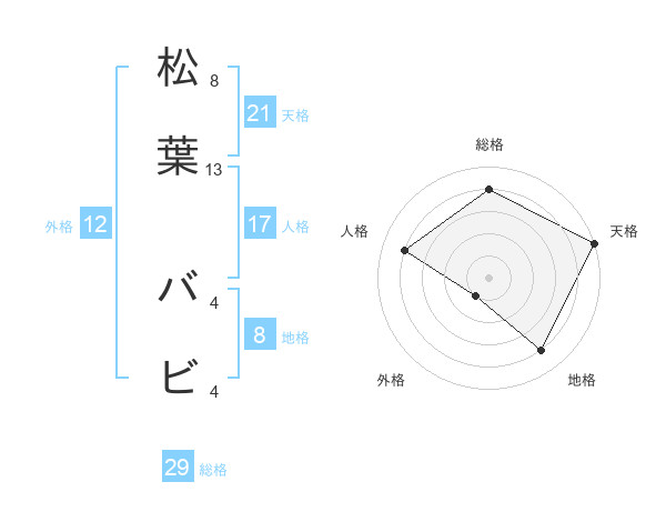本サイトの鑑定結果の正当性は保証しません。鑑定結果は参考程度にお読みください。実際の名づけにご利用される場合は、姓名判断についてご自身でよくお調べください。
