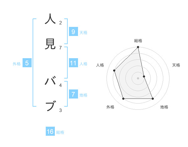人見 バブさんの総格は16画の5点!