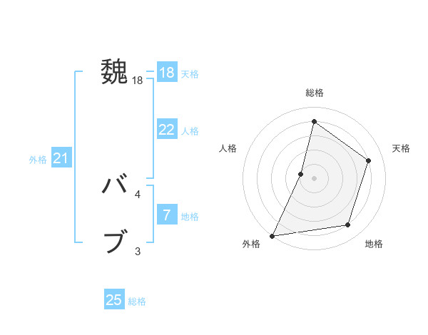 魏 バブさんの総格は25画の4点!