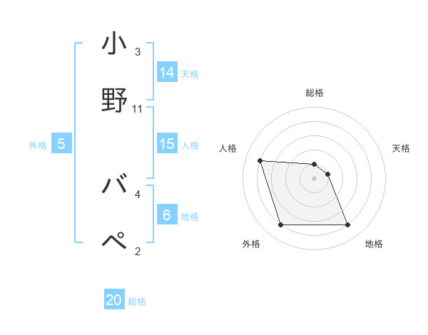 小野 バペさんの総格は20画の1点!