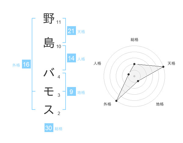 野島 バモスさんの総格は30画の2点