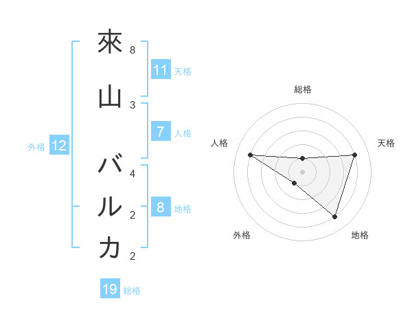 來山 バルカさんの総格は19画の1点!