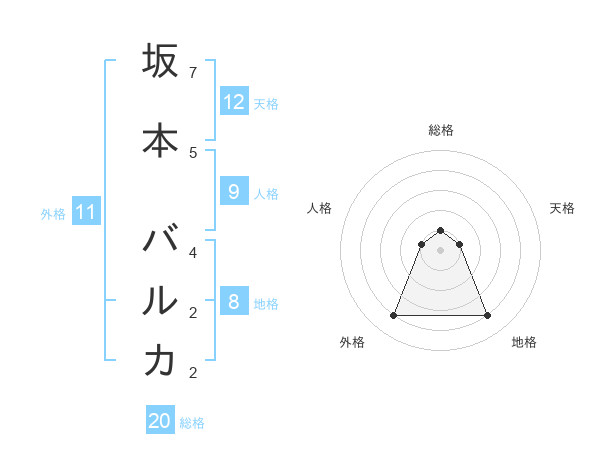 坂本 バルカさんを姓名の画数から五運を鑑定