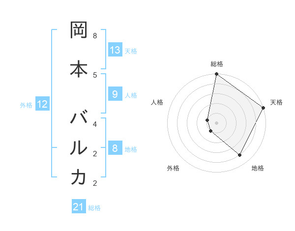岡本 バルカさんの天格は13画の5点!