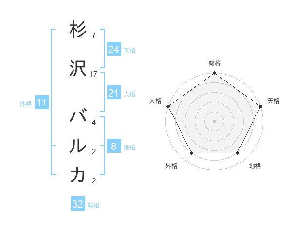 杉沢 バルカさんを姓名の画数から五運を鑑定