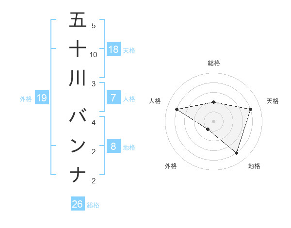 五十川 バンナさんを姓名の画数から五運を鑑定