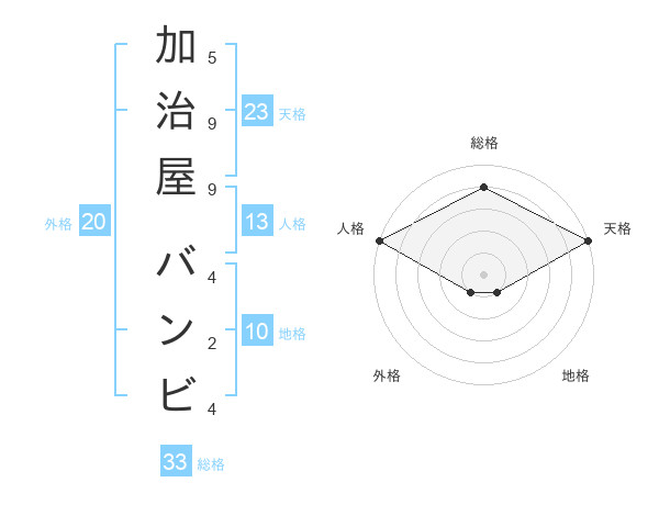 加治屋 バンビさんを姓名の画数から五運を鑑定